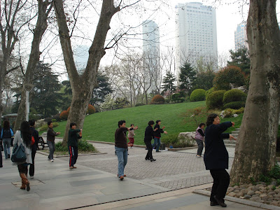 Утром, чтобы скоротать время до запланированной экскурсии, мы вышли прогуляться в парк по соседству с нашим отелем. И были поражены, увидев огромное количество людей в парке, которые, разбившись на группки, занимались оздоровительными процедурами.