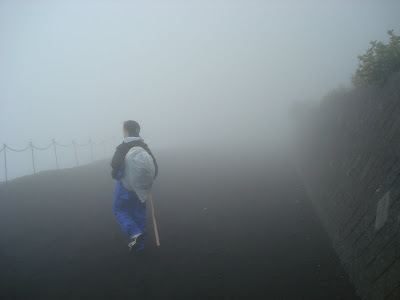 Примерно в 12:30 дня, перекусив на дорожку, мы отправились в наш долгий путь к вершине. Поначалу мы надели на себя свои непромокаемые костюмы, так как накрапывал какой-то мелкий дождик, но уже минут через 15 пути мы разделись до футболок, так как было невыносимо жарко. Дождик вроде бы прекратился, зато стал наползать густой-прегустой туман, и вскоре стало видно только на расстоянии вытянутой руки.
