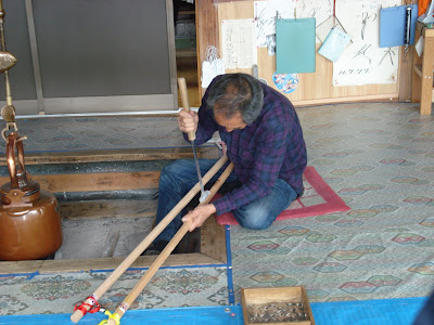 Чтобы слово «отель» не ввело вас в заблуждение, я немного расскажу о том месте, где мы ночевали. Горные хижины, как правило, устроены очень примитивно. Это небольшой домик, одной стороной встроенный в гору. Внутри – одно большое помещение. Здесь принимают пищу – иногда сидя прямо на полу, и тогда пол покрыт татами, а иногда за столами – как в нашем отеле. Часть этого помещения огорожена занавесками, за которыми располагается «спальня» – прямо на пол плотно уложены японские матрасы – футоны, при этом часто с таким расчетом, что на два футона приходится по три человека, только подушка и одеяло – персональные. Довольно часто спальные ряды делают двух-, а то и трех-этажными, чтобы разместить как можно больше людей.