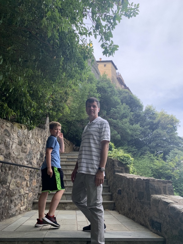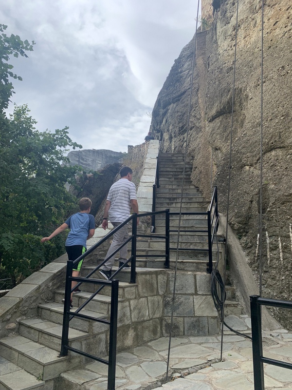 Мы решили начать с монастыря Святого Николая. Запарковались у подножия огромной скалы и пошли вверх по ступенькам.