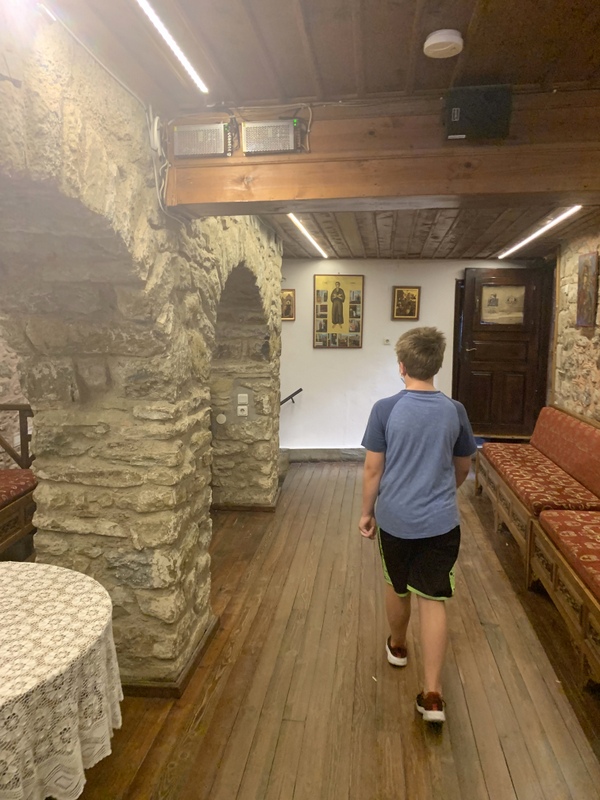 Монастырь Святого Николая – один из самых старых, существует еще с 14 века. На вершине скалы места немного, поэтому монастырь располагается на нескольких уровнях. На первом устроена маленькая часовня Святого Антония. Сфотографировали ее для нашего Антония.