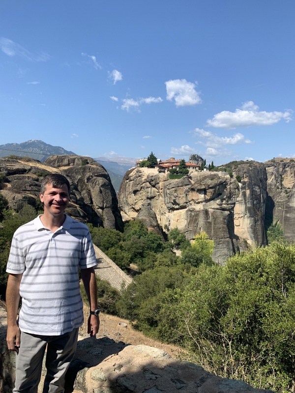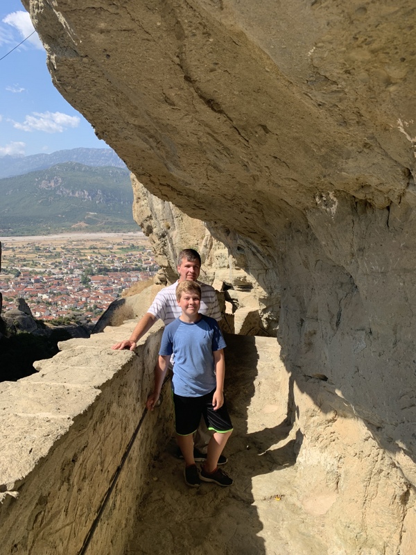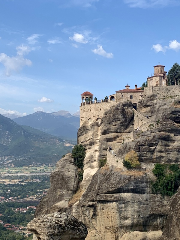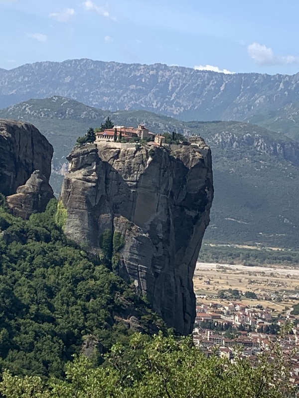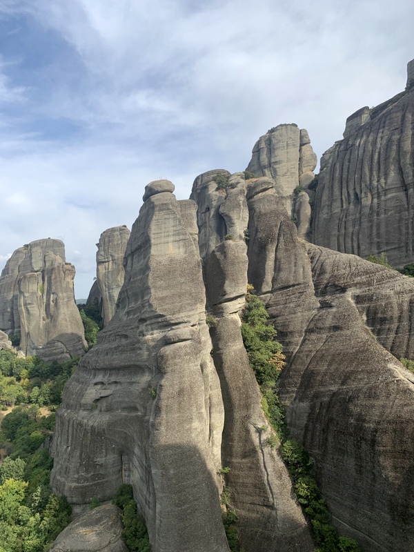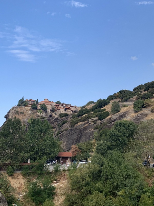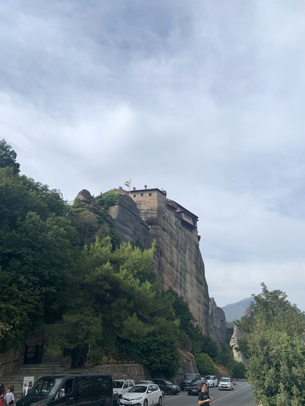 Метеоры – уникальное место. На самых верхушках высоченных скал расположились христианские монастыри. Метеоры в переводе с греческого – это “парящие в воздухе”. Вот мы и поехали смотреть эти парящие в воздухе монастыри.