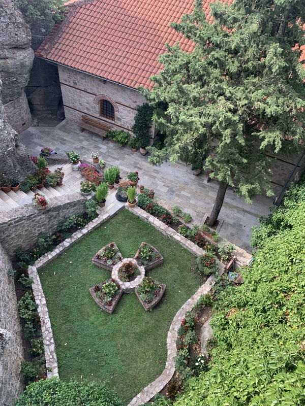 Следующий наш монастырь – мужской монастырь Святой Троицы. Этот монастырь фигурировал в одном из фильмов о Джеймсе Бонде. К нему добираться довольно сложно, потому что он стоит совсем на отдельной скале. Поэтому сначала надо идти от парковки долго-долго по узкой дороге над пропастью , а потом уже карабкаться по ступенькам вверх.