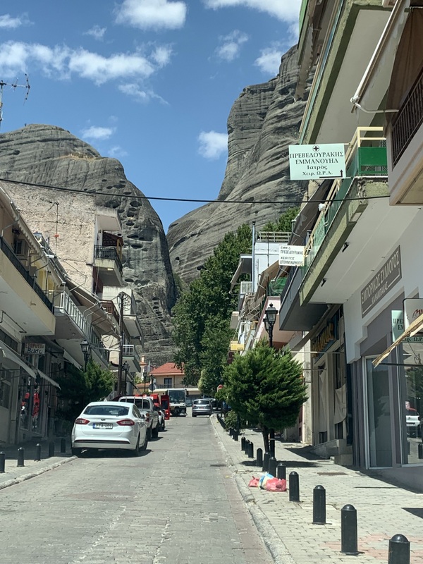 От монастыря Святого Стефана уже очень близко до Коламбаки (или Колампаки) – это самый большой город около Метеор.