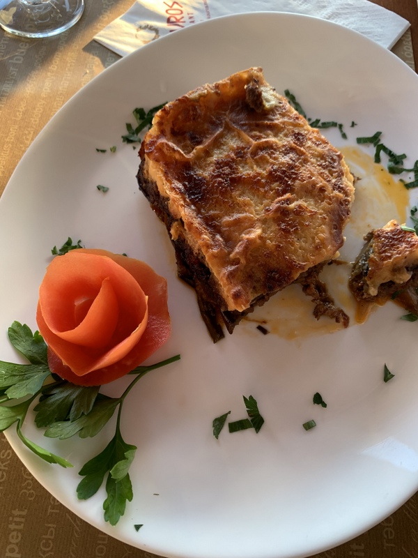 Я ела жареную рыбу с другими морепродуктами. Филипп уже устал от греческий еды и взял себе макароны. А Денис решил попробовать мусаку. Она ему не очень понравилась. Я мусаку только в детстве пробовала, когда мой папа вспоминал свои болгарские корни и готовил ее. Но мне она тогда тоже не очень нравилась.