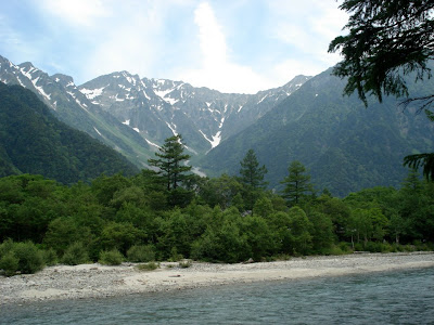 Мы доехали до Камикочи – великолепной горной долины, расположенной в северной части японских Альп. Долина находится на высоте 1500 метров над уровнем моря, и открыта только с апреля по ноябрь. Сюда не разрешен проезд на частных машинах. Все туристы, приезжающие в Камикочи, должны оставить свои машины на паркингах за несколько километрах до туннеля, ведущего в долину, и пересесть в специальные автобусы, курсирующие туда и обратно каждые 15-20 минут. Места здесь очень красивые, а потому – невероятно популярные среди японцев. Говорят, что в выходные, в самый летний сезон – после 20 июля и до середины августа – народу здесь бывает больше, чем на токийской станции метро Шинджюку, а это ни больше, ни меньше – самая запруженная станция в мире. Мы приехали немного до начала сезона, а потому любовались речкой Азуса с водой необыкновенного бирюзового оттенка, и дышали чистейшим горным воздухом, конечно, не в полном уединении, но при небольшом количестве туристов.
