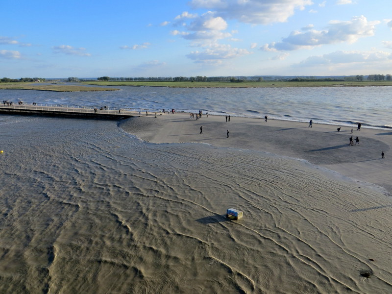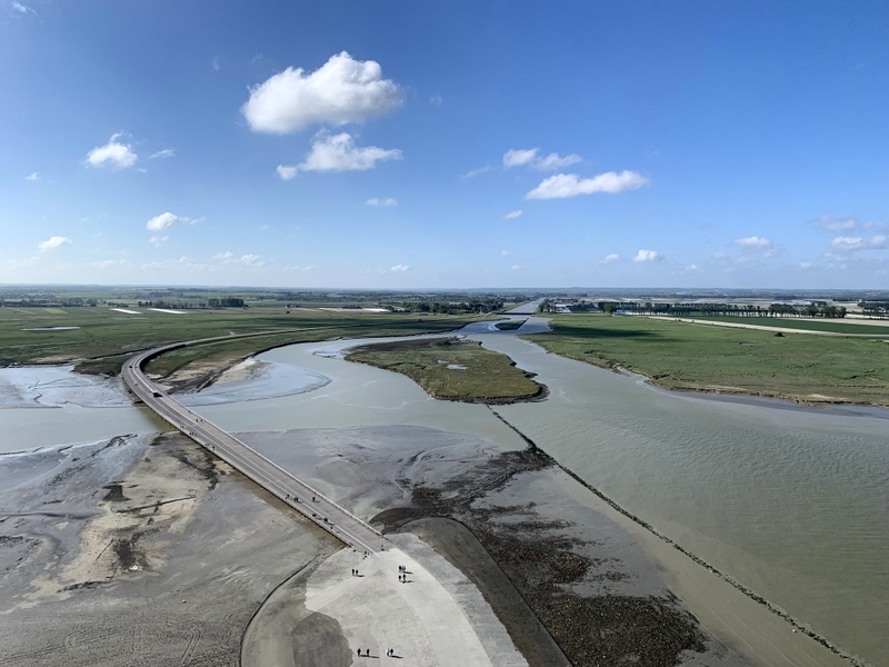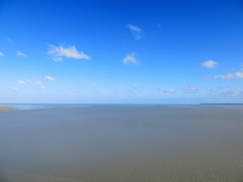 Видно, как сильно вода ушла, мост совсем оголился. Там, кстати, во время отлива водят экскурсии по обнаженному дну. Только очень не рекомендуется бродить там без опытных экскурсоводов. Прилив может начаться неожиданно, да и провалиться в топкую глину немудрено.