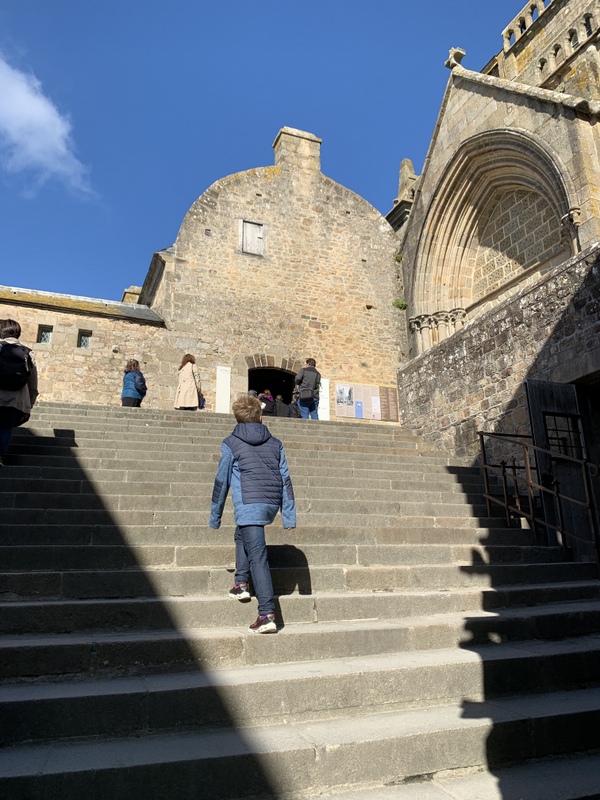 Мы еще немного погуляли наверху, и стали спускаться вниз. Тут уже все было заполнено туристами – галдеж, толкучка, толпы людей. Как же хорошо, что нам удалось рано утром побыть с этим островом наедине. Пока, Сэн-Мишель! Хорошо, что мы тебя увидели.