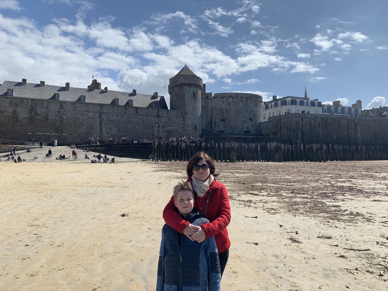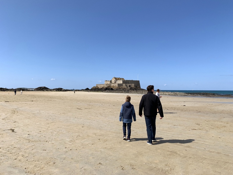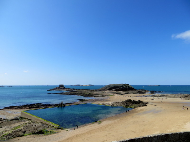 А потом мы поехали в Сэн-Мало – портовый город с богатой историей. На пляже в Сэн-Мало, куда мы первый делом отправились, нас ждало солнце и синее-синее море (вернее, океан).