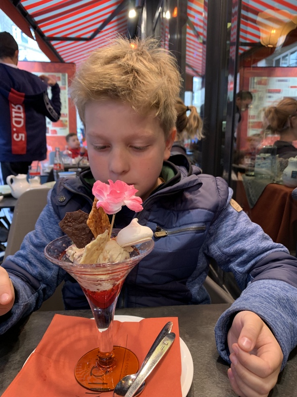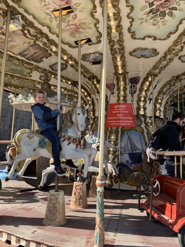 В этот день было очень солнечно, но ветрено. Ветер был просто ледяной. Я даже отобрала у Филиппа, которому всегда жарко, шапку.