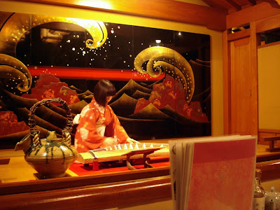 А чтобы пища лучше переваривалась, слух посетителей услаждает «божественная» музыка, извлекаемая старательной японской девушкой из традиционного музыкального инструмента кото.