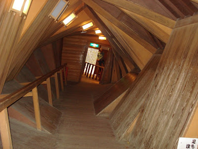 А вот внутри начинаются настоящие чудеса. Дом настолько наклонен в одну сторону, что когда в нем пытаешься стоять прямо, тебя неизменно несет в одну сторону. Так что стоять в этом доме, не опираясь на стену, совершенно невозможно. Так мы там и передвигались – по стеночке.